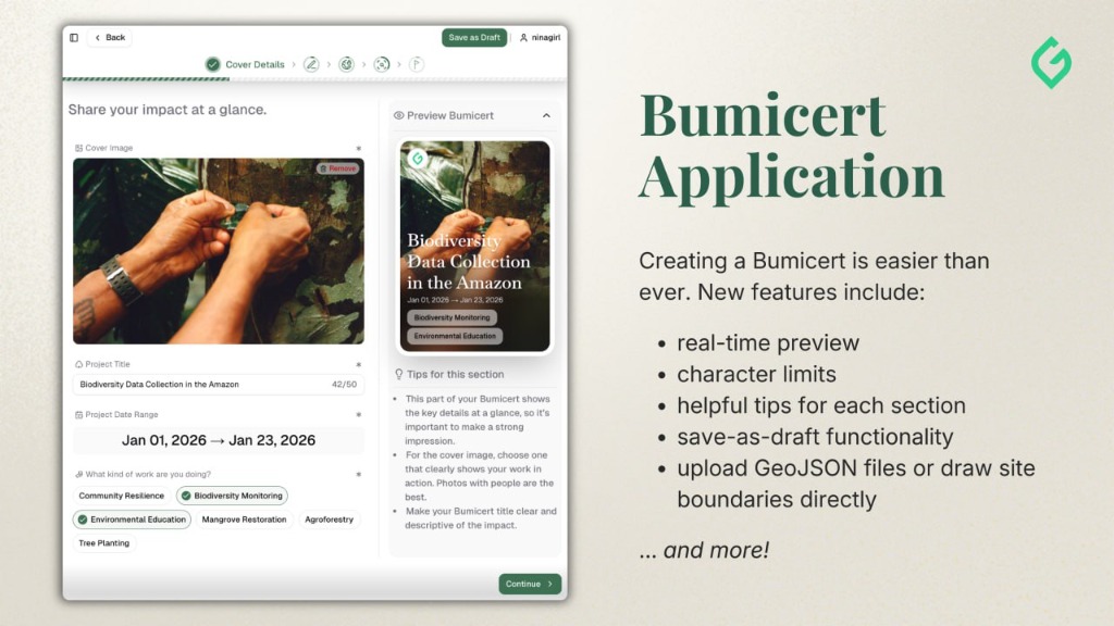 You can now save your Bumicert as a draft and come back to it later. No more losing your progress if you need to step away!